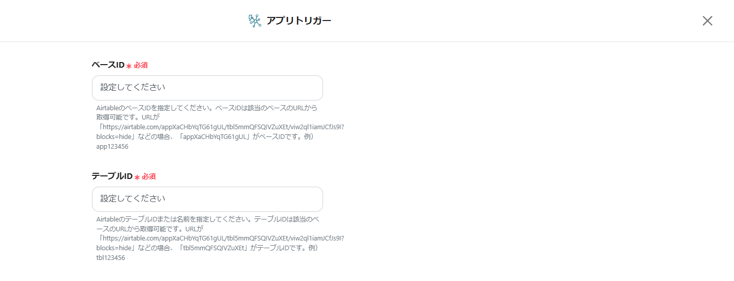 ボックス下部の補足に従い、AirtableのURLからコピー&ペーストしましょう。