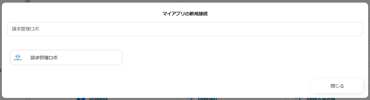 検索ボックスに請求管理ロボと入力し、請求管理ロボのアイコンをクリックします。