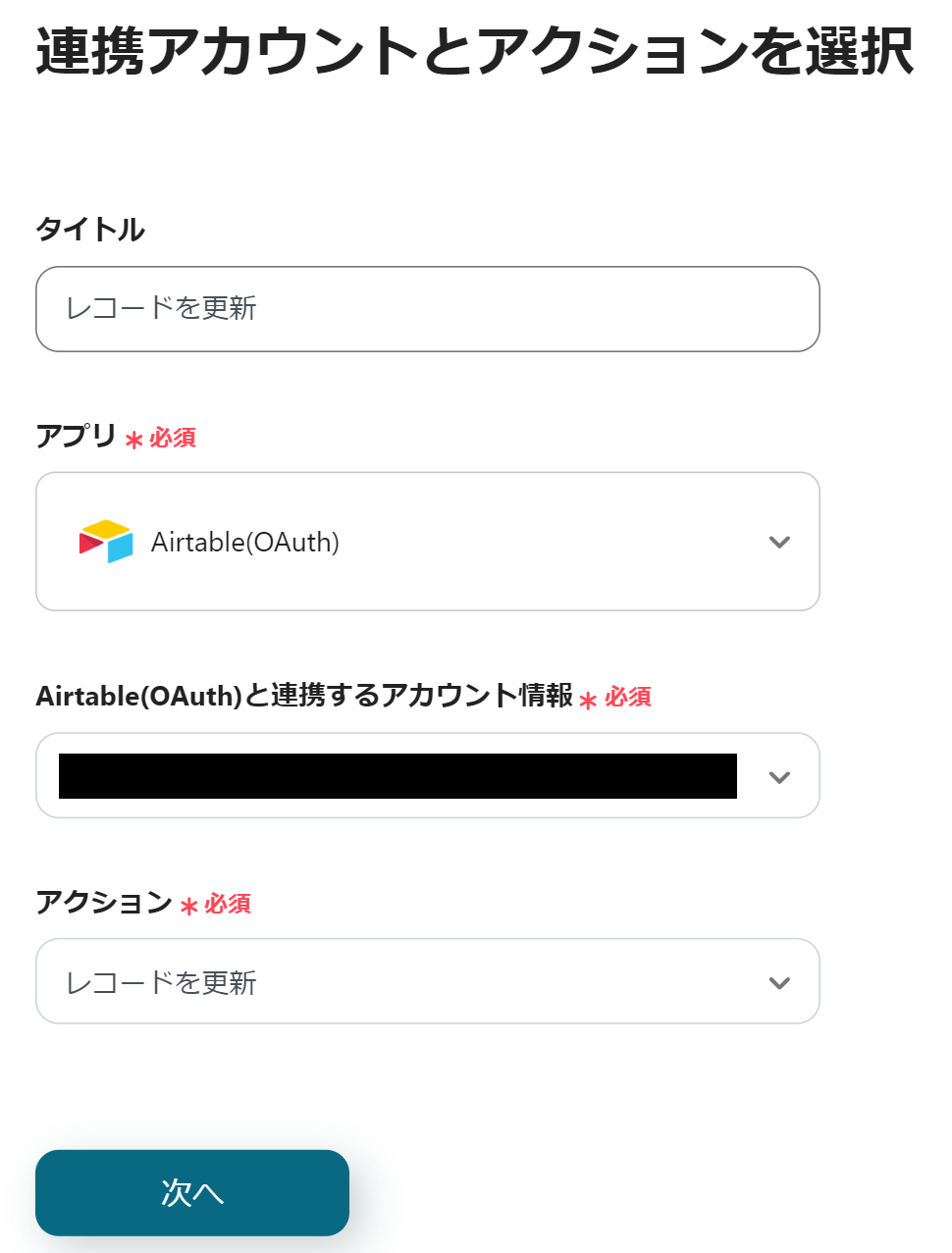 続いて、Airtableのレコードを更新する設定を行うため、「レコードを更新」をクリックしましょう。