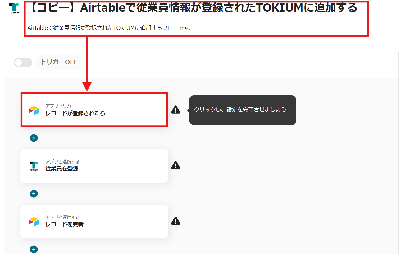 今回は「Airtableで従業員情報が登録されたTOKIUMに追加する」という以下のテンプレートの設定方法をご紹介します。
