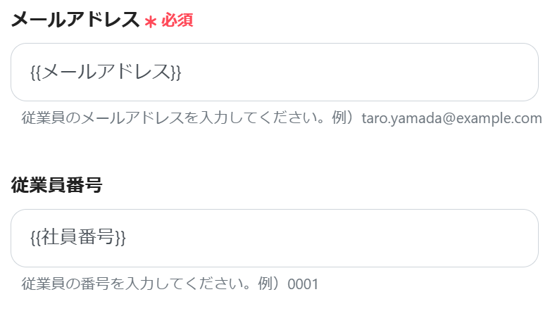 以下のようにAirtableで設定した値がアウトプットとして表示されるので、該当する値を設定しましょう。