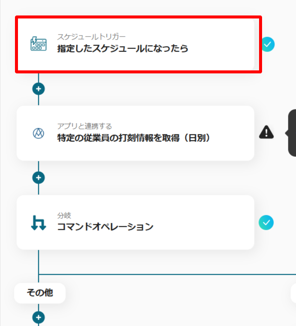前日の勤怠情報を取得するので、業務に合わせて決まった時間にフローが動くように設定しましょう。