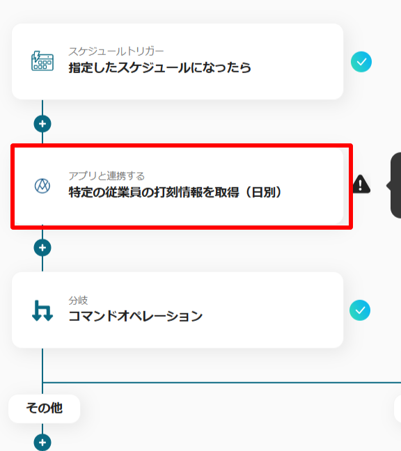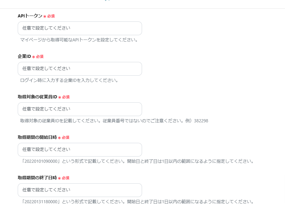 続いて「特定の従業員の打刻情報を取得」の設定です。