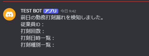 打刻漏れ通知をDiscordで共有することで、チーム全体の勤怠状況を俯瞰できます。
