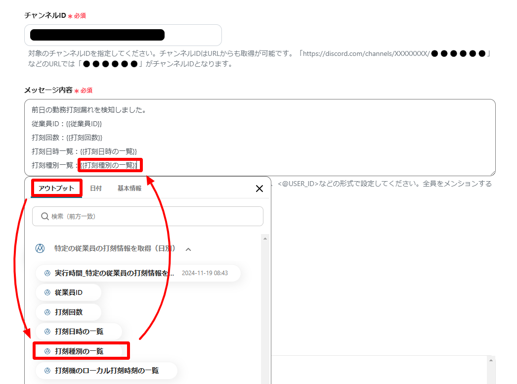 次のページでは、通知するDiscordのチャンネルとメッセージ内容の詳細設定を行います。