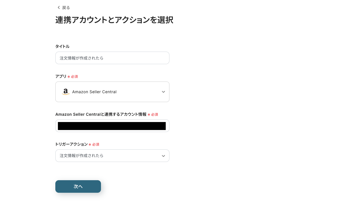 トリガーとなる「注文情報が作成されたら」をクリックして、連携するアカウント情報を確認してください。