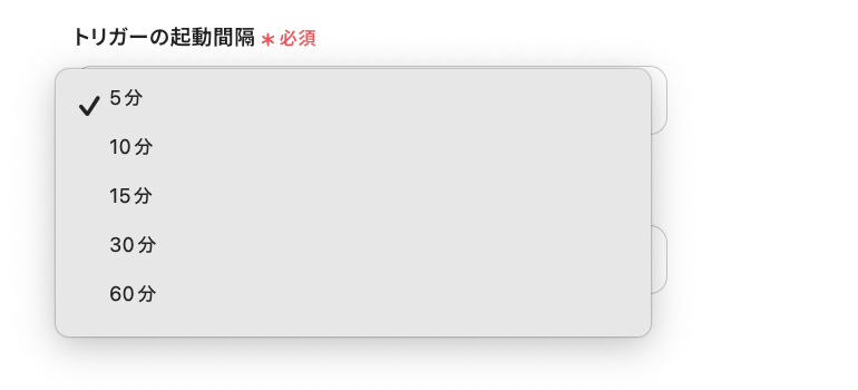 ※トリガーの起動タイミングは、5分、10分、15分、30分、60分のいずれかで設定できます。