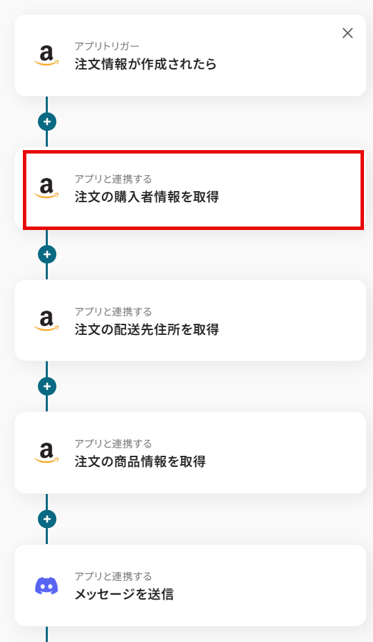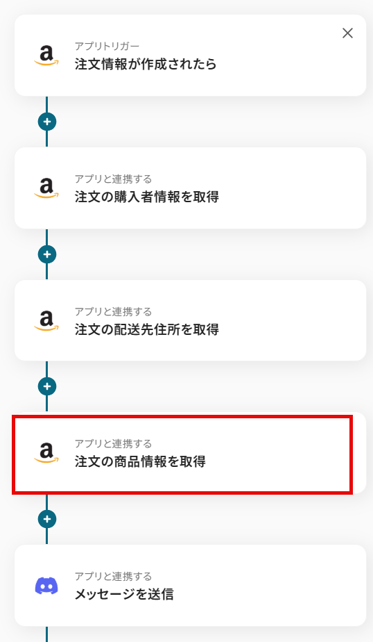 Amazon Seller Central APIの注文作成をアクションの起点として使用することで、新たな注文が入った際にチャットツールなどへ素早く通知するフローを自動化でき、担当者間の迅速な情報共有や受注処理のスピードアップを実現します。