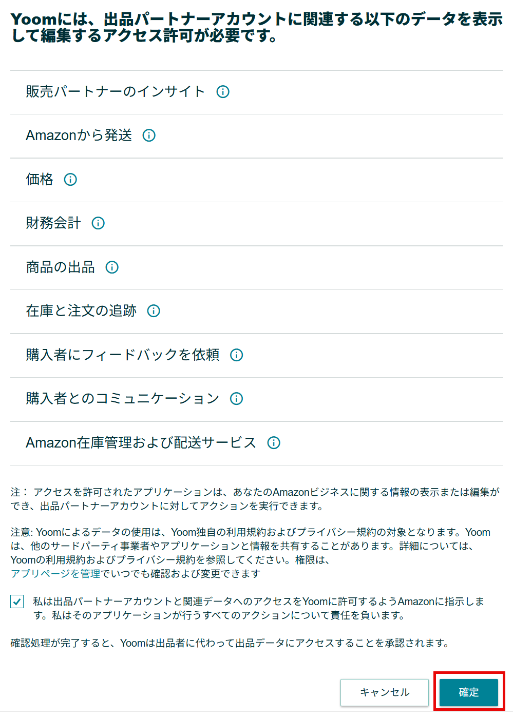 アクセス許可の画面が出てきたら、確定をクリックしたらこれでAmazon Seller Central APIとの連携は完了です。 今回は「Amazon Seller Centralで注文情報が作成されたら、Discordに通知する 」という実際のフローボットも作成していきます!