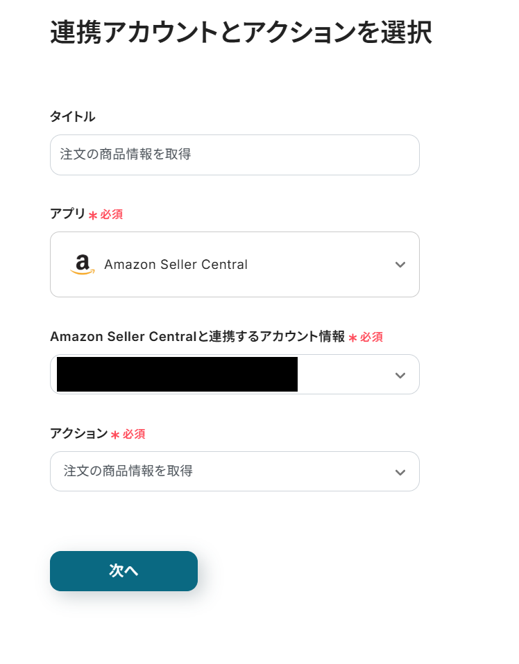 注文ID 前項で取得した値(アウトプット)からアマゾン注文IDを選択