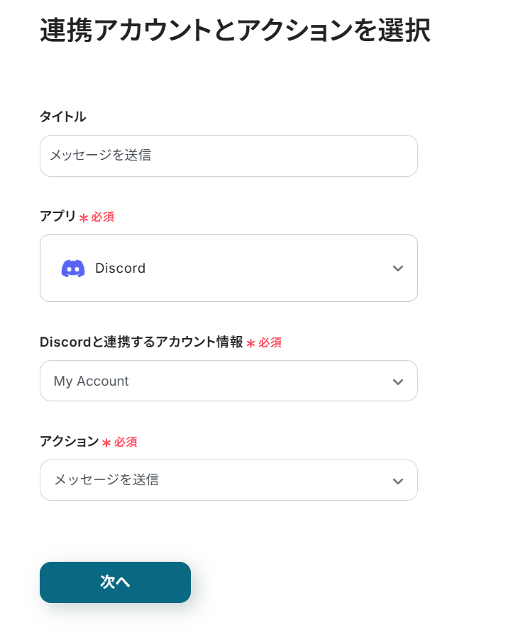 次に5つ目の工程をクリックします。Discordに送信するメッセージを作成しましょう。