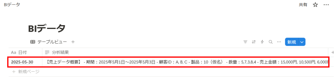 入力が完了したら、「テスト」を実行し成功するか確認してください。指定したNotionにデータが反映しているはずなので、チェックしてみましょう。