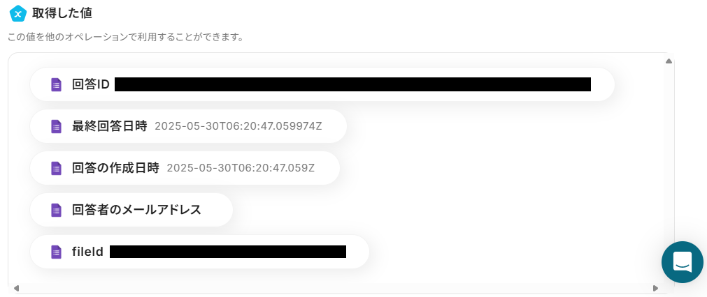 ・Googleフォームをトリガーとして使用した際の回答内容を取得する方法は下記を参照ください。