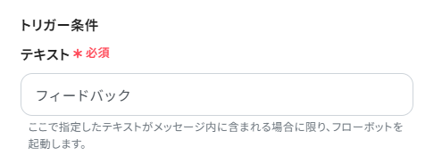指定のテキストを含むメッセージが送信されたことを自動化のトリガーにするための設定を行います。