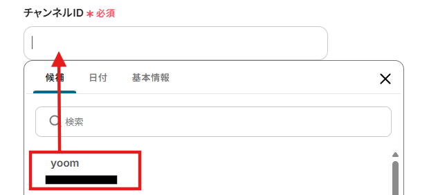 チャンネルIDは以下のように表示される候補から選択しましょう。