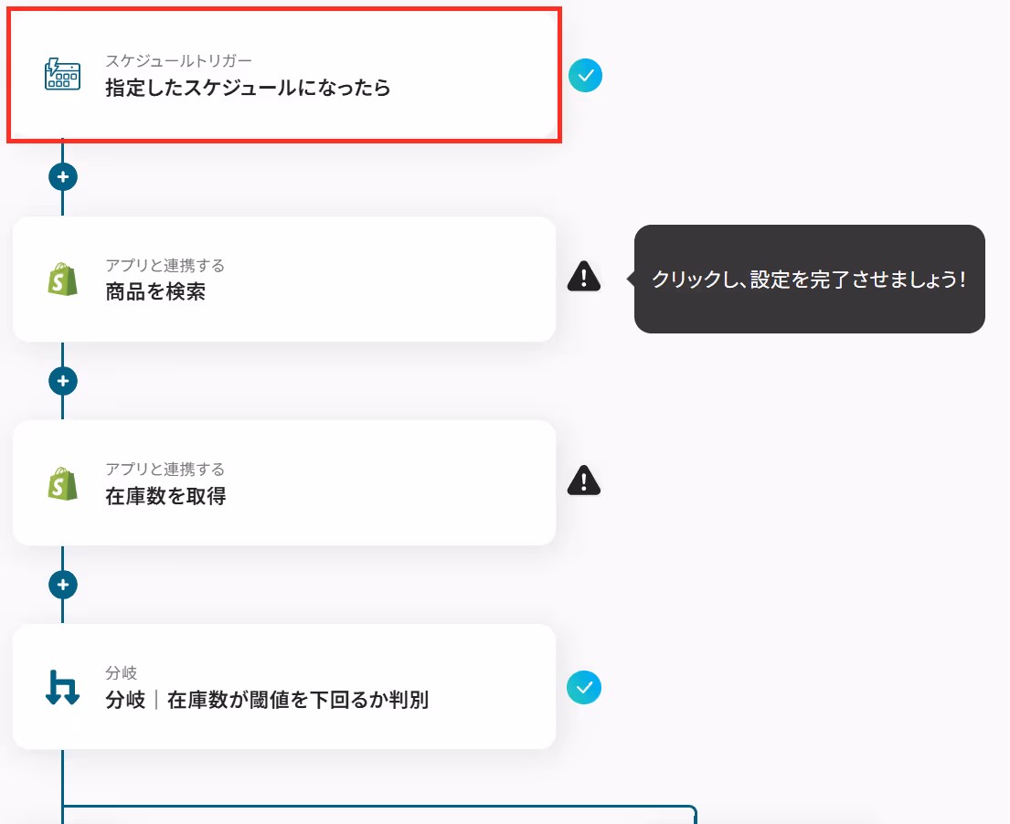 「分岐|在庫数が閾値を下回るか判別」をクリック。