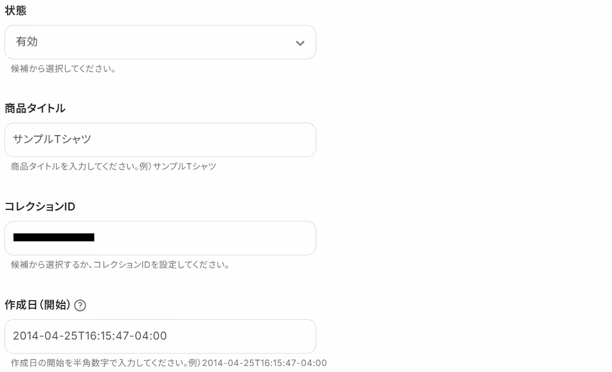 在庫アイテムIDの欄にはShopifyの「在庫アイテムIDのリスト」が予め設定されているので、そのままで大丈夫です。