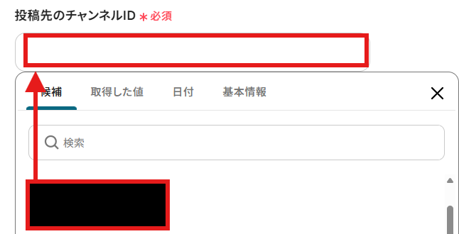 「投稿先のチャンネルID」を候補から設定しましょう。