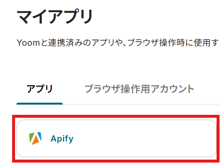 Yoomのアプリ一覧画面からApifyを選択しましょう。