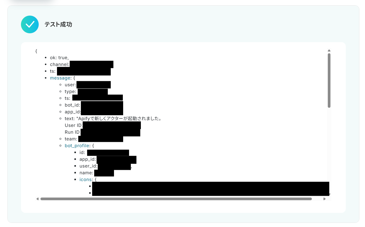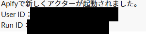 これにより、毎回Apifyを開いて状況を確認し、メンバーへ通知する手間を省けます。