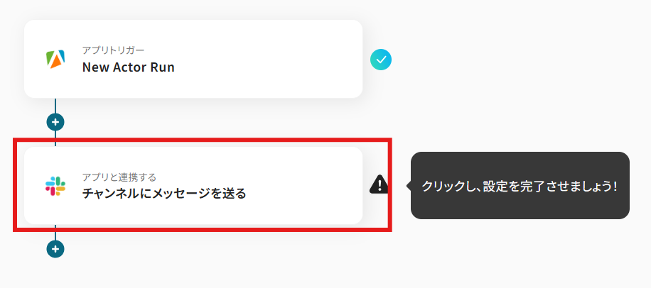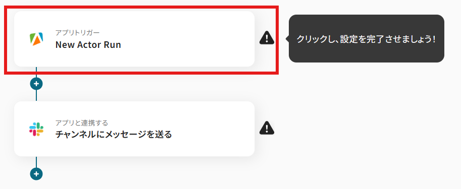 このワークフローは、Apifyでアクターが新しく実行されたタイミングを検知し、Slackへ自動で通知を送信します。