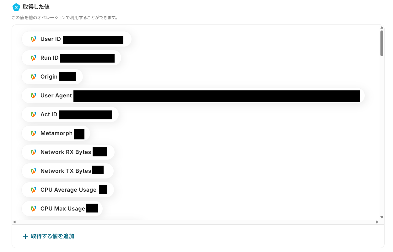 「取得した値」について、詳しくはこちらをご覧下さい。