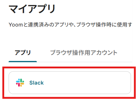 Yoomにログイン後、Slackのマイアプリ連携を行いましょう。