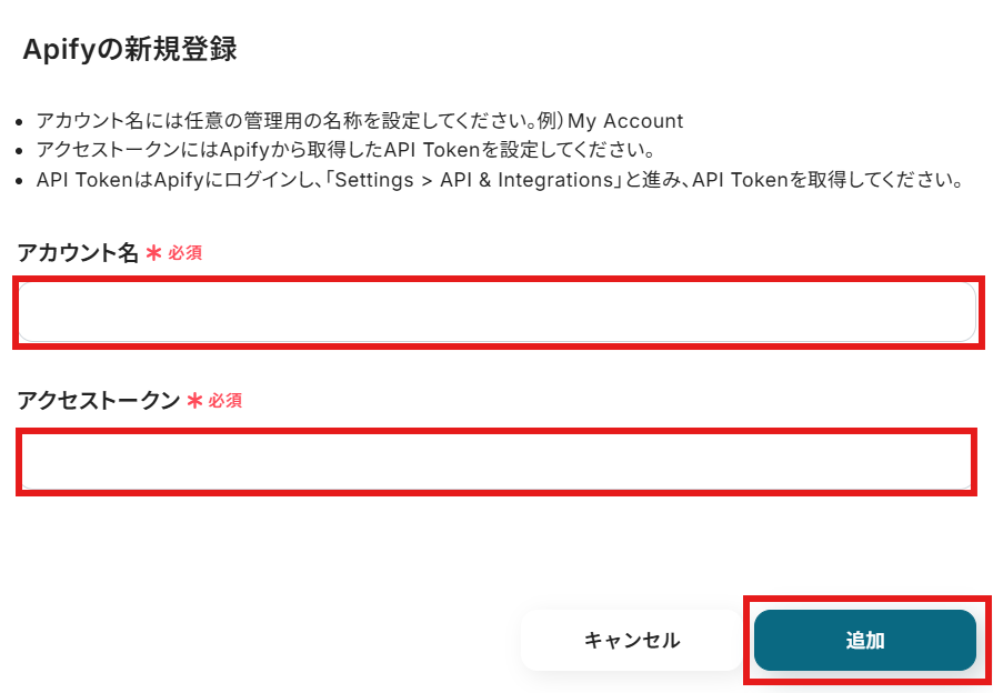 ・Apify、DiscordのそれぞれとYoomを連携してください。