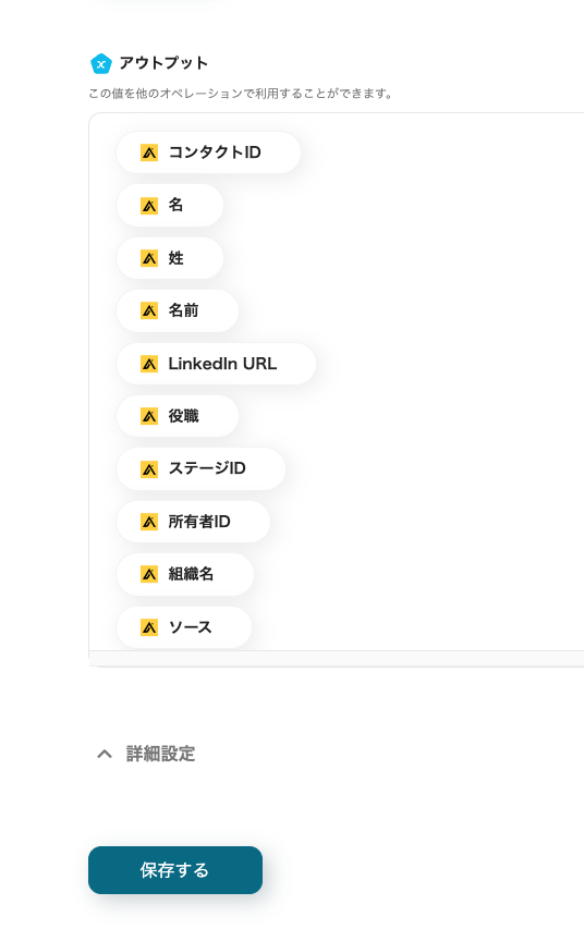 各項目の設定後、「テスト」をクリックしSansanに名刺データが登録されているか確認しましょう。