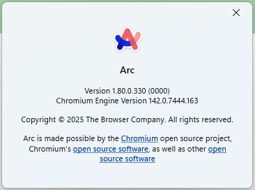 ArcブラウザのWindows版(Version 1.80.0.330)で検証を実施。
