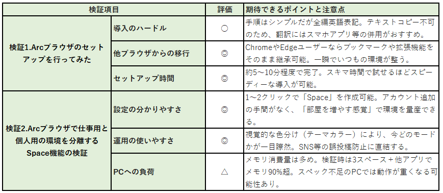 検証内容:Arcブラウザで仕事用と個人用の環境を分離するSpace機能の検証