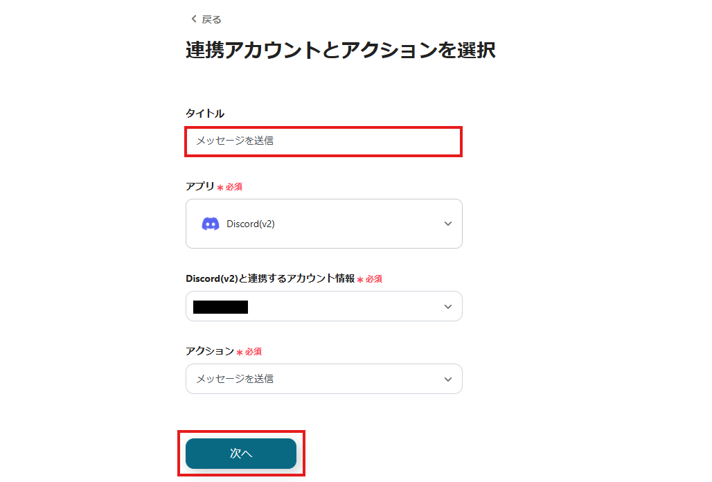 ステップ3: Discordにメッセージを送信するアクションの設定
