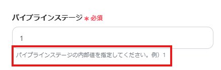 「パイプラインステージ」は、入力欄下の説明に従って、入力してください。