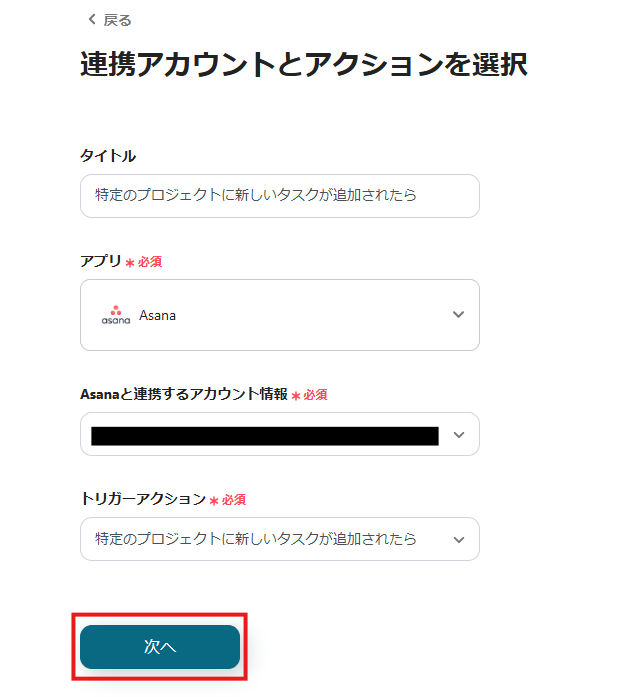 1.先ほどの画面で「OK」をクリックして、表示された画面のアプリトリガー「特定のプロジェクトに新しいタスクが追加されたら」をクリックしてください。
