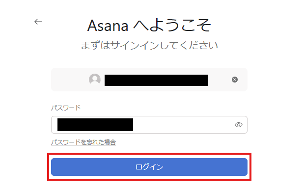 次の画面で、パスワードを入力し、「ログイン」をクリックしてください。