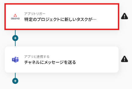 Asanaのトリガー設定およびMicrosoft Teamsのアクション設定