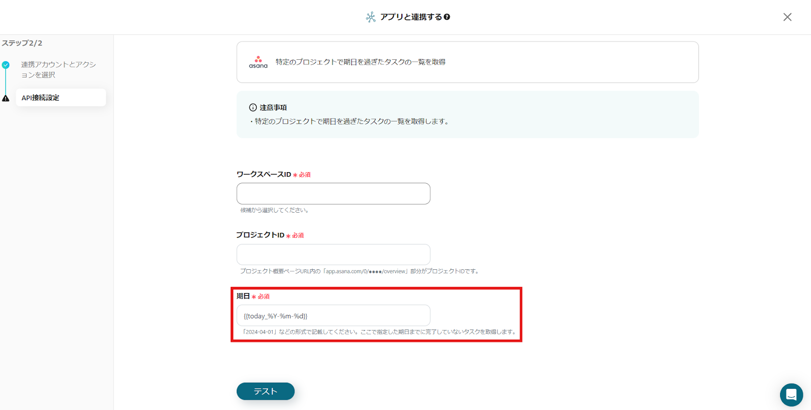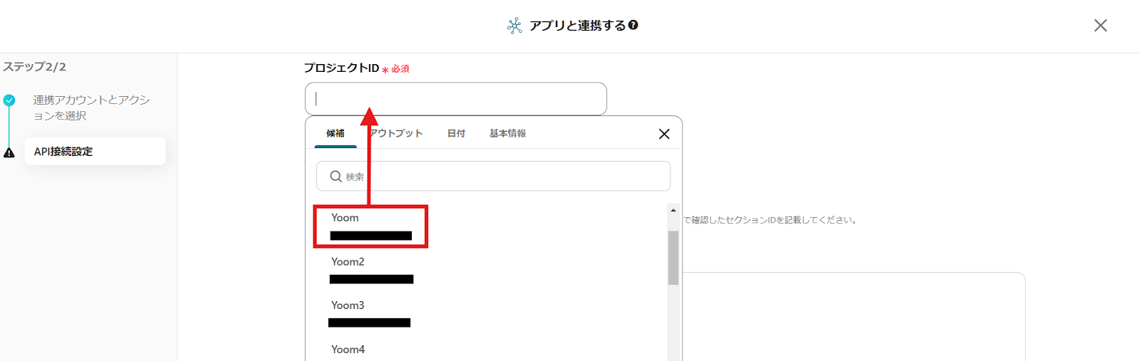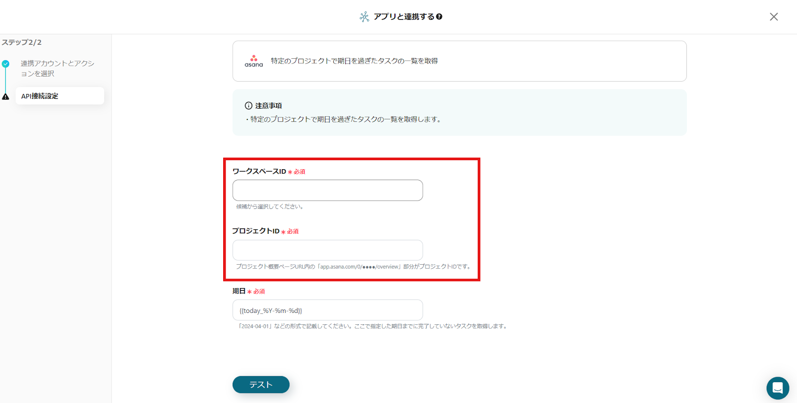 Asanaのプロジェクトが一覧表示されるため、期限が迫るタスクを取得したい各IDを一覧から選択しましょう。