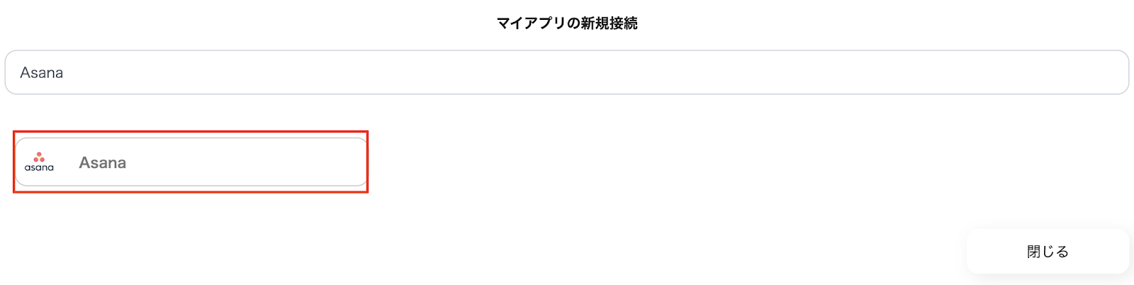 マイアプリ新規接続の画面で、Asanaを検索し、選択しましょう。
