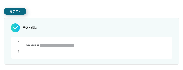 入力完了後「テスト」をクリックし、実際にChatworkへテスト送信行われているかを確認しましょう。