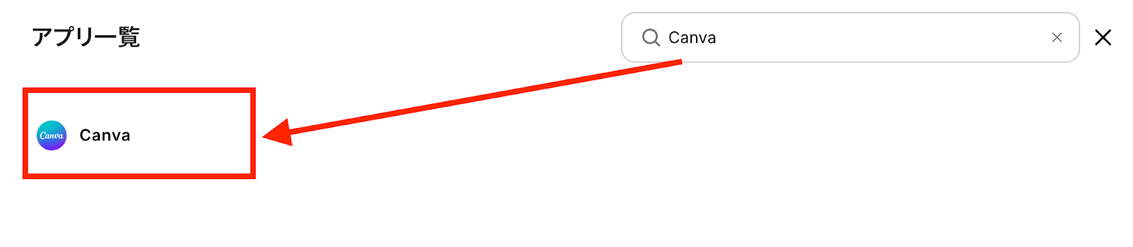 検索ボックスに「Canva」と入力し、左上のCanvaのアイコンをクリックします。