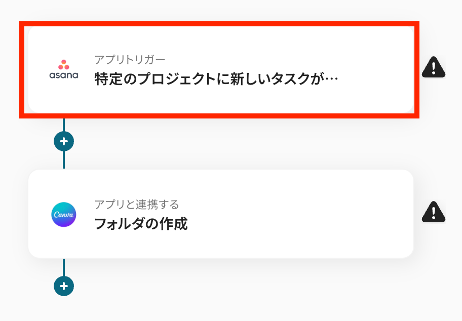 フローの作成方法 今回は「Asanaでタスクが登録されたら、Canvaにフォルダを作成する」フローを作成していきます! 作成の流れは大きく分けて以下の通りです。