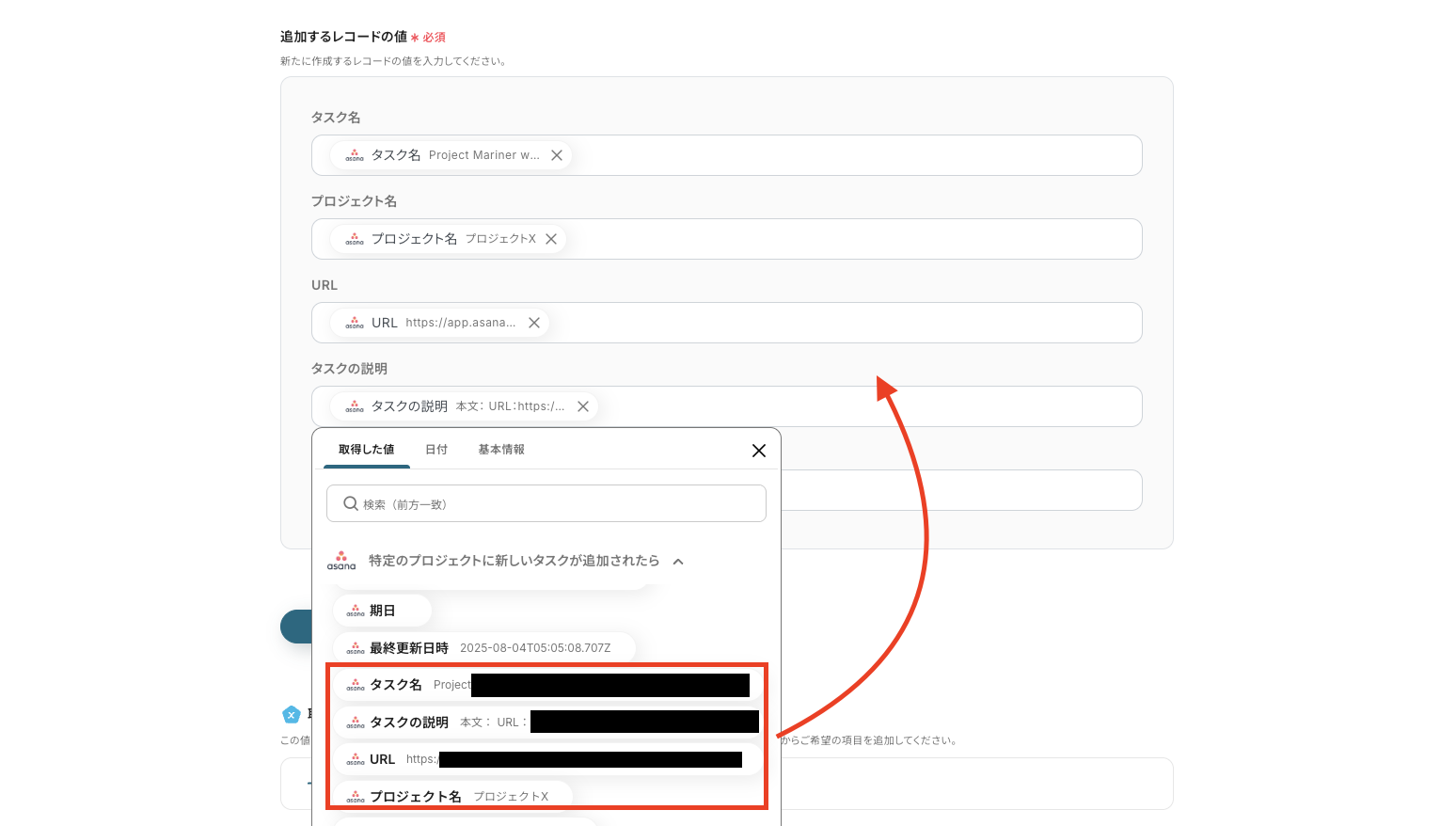 ステップ3:Asanaのトリガーアクション設定