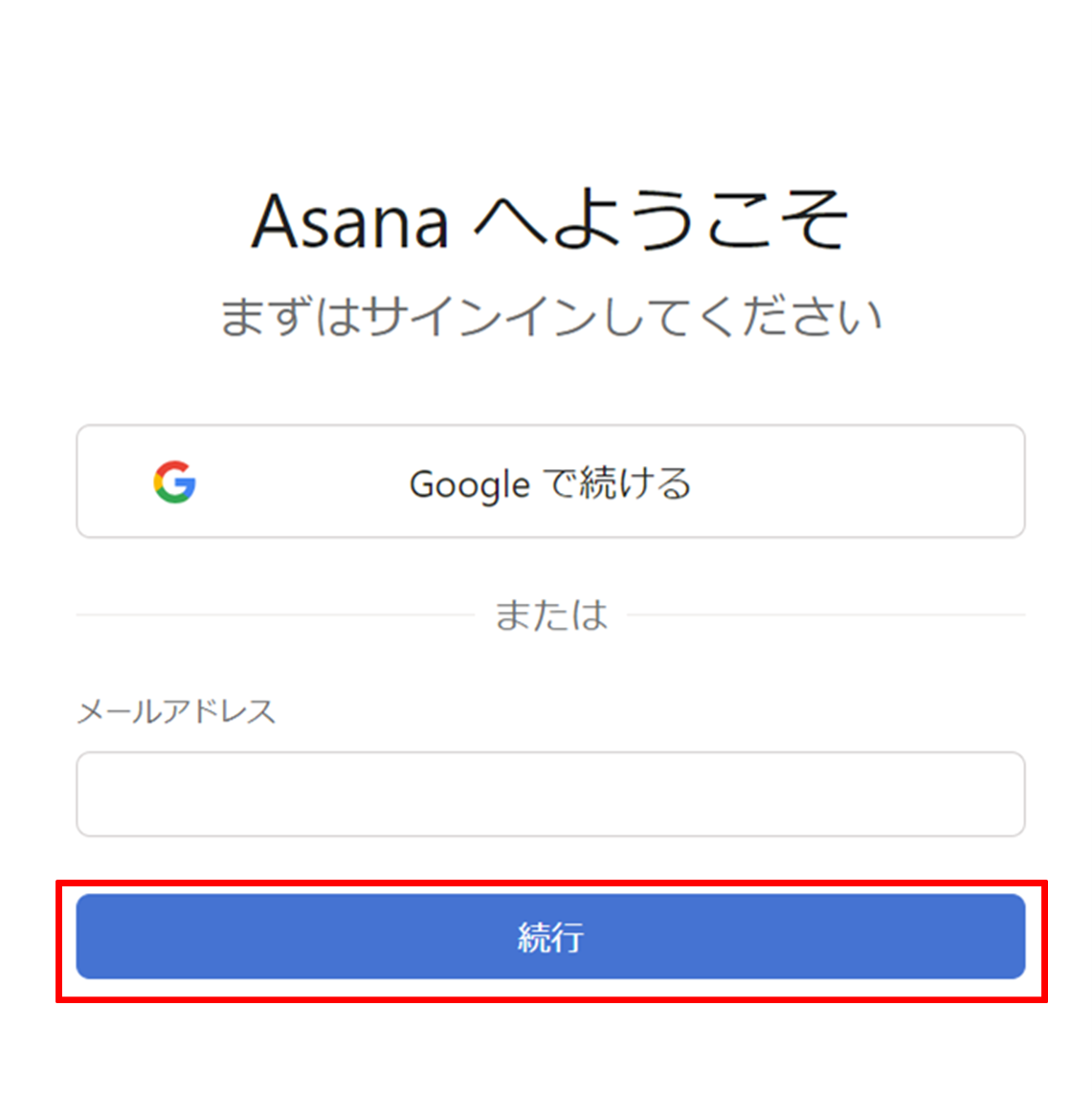 (3)Asanaのサインイン画面が出てきます。お持ちのアカウントのメールアドレスを入力し「続行」をクリックします。
