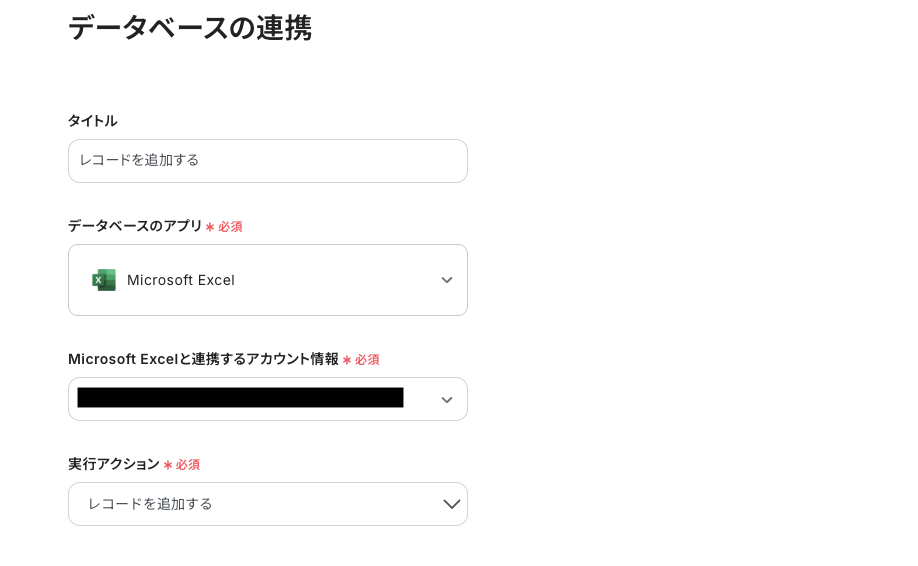 ステップ4:Microsoft Excelにレコードを追加する設定