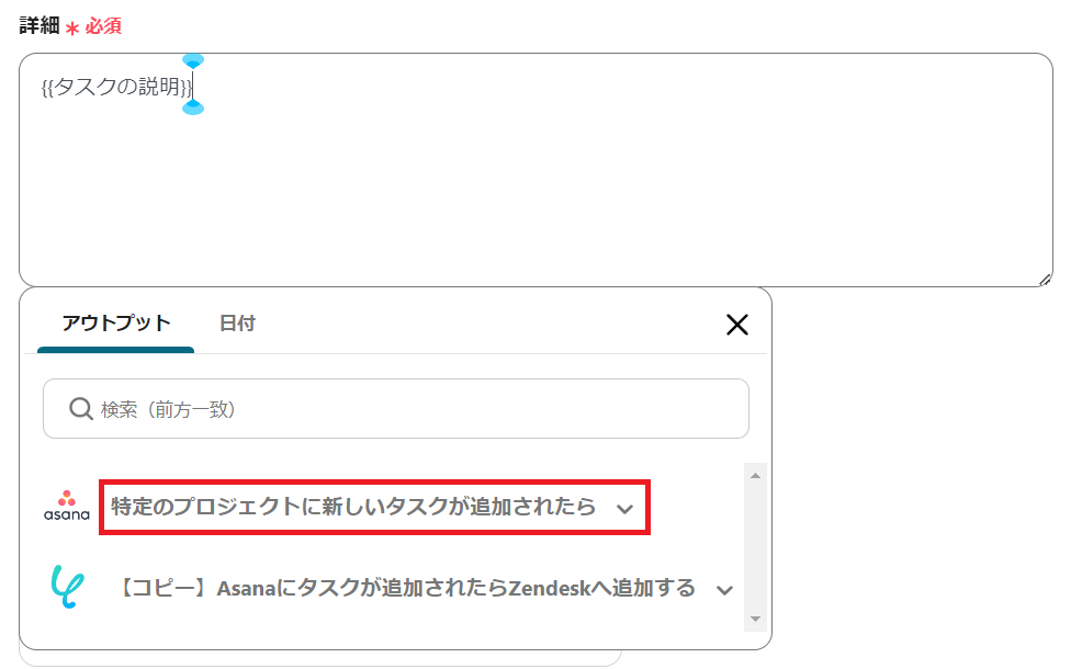 「【コピー】Asanaにタスクが追加されたらZendeskへ追加する」をクリックします。