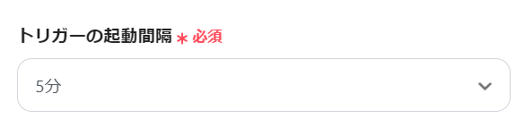 プルダウンから起動間隔を設定しましょう。トリガーは5分、10分、15分、30分、60分の間隔で起動間隔を選択できます。