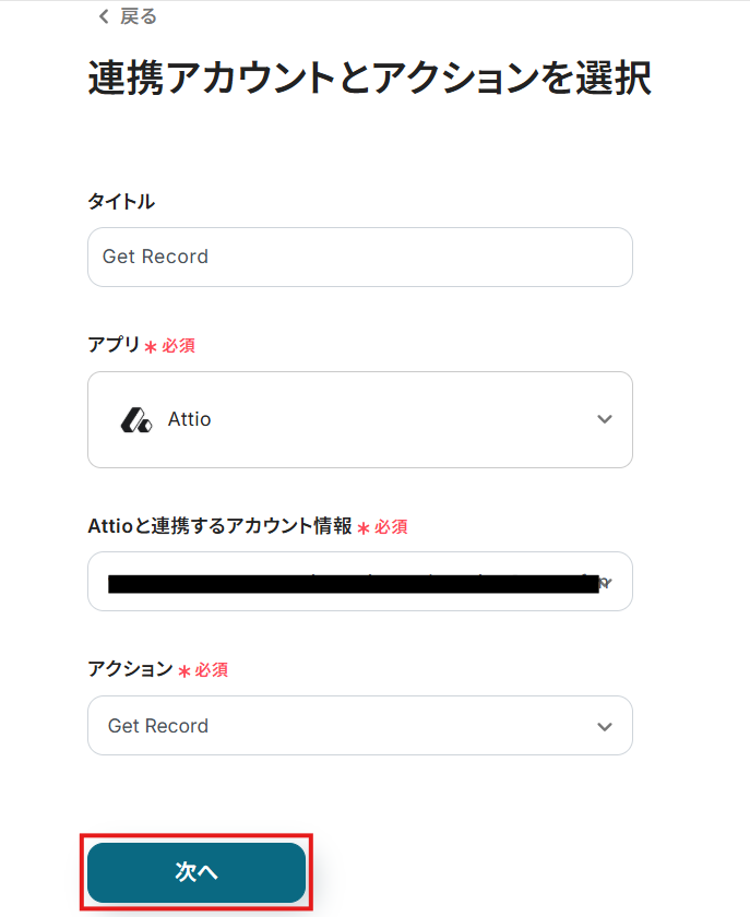 ここではSlackに送信するAttioの詳細なデータを取得する設定を行います。