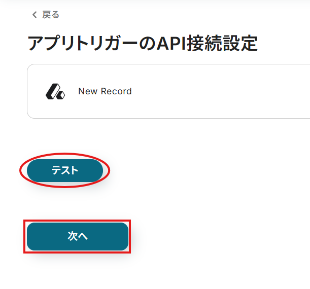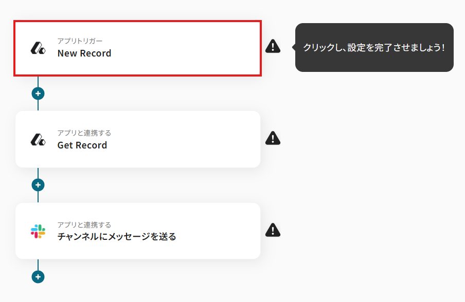 先ほどの画面で「OK」をクリックして、表示された画面のアプリトリガー「New Record」をクリックしましょう。