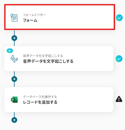 - フォームのトリガー設定と文字起こし・Microsoft Excelのアクション設定