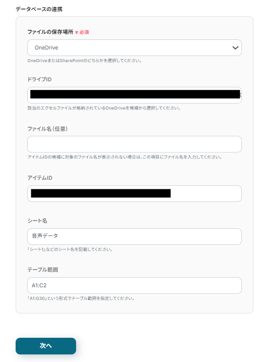 フォームで音声データが送信されたら、文字起こししてMicrosoft Excelに追加する